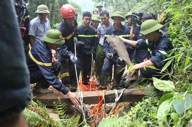 Sau nhiều lượt vào hang, đội cứu hộ đã tìm thấy thi thể ông Bảy ở độ sâu gần 100 m.