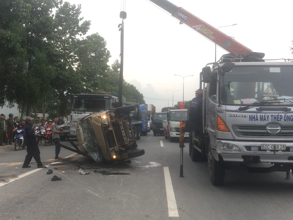 Khi đi đến đoạn đường qua phường Phú Mỹ (TP Thủ Dầu Một, tỉnh Bình Dương) thì bất ngờ loạng choạng, mất lái. Chiếc xe lao lên dải phân cách tông gãy trụ đèn chiếu sáng rồi văng ra giữa làn đường bên cạnh.