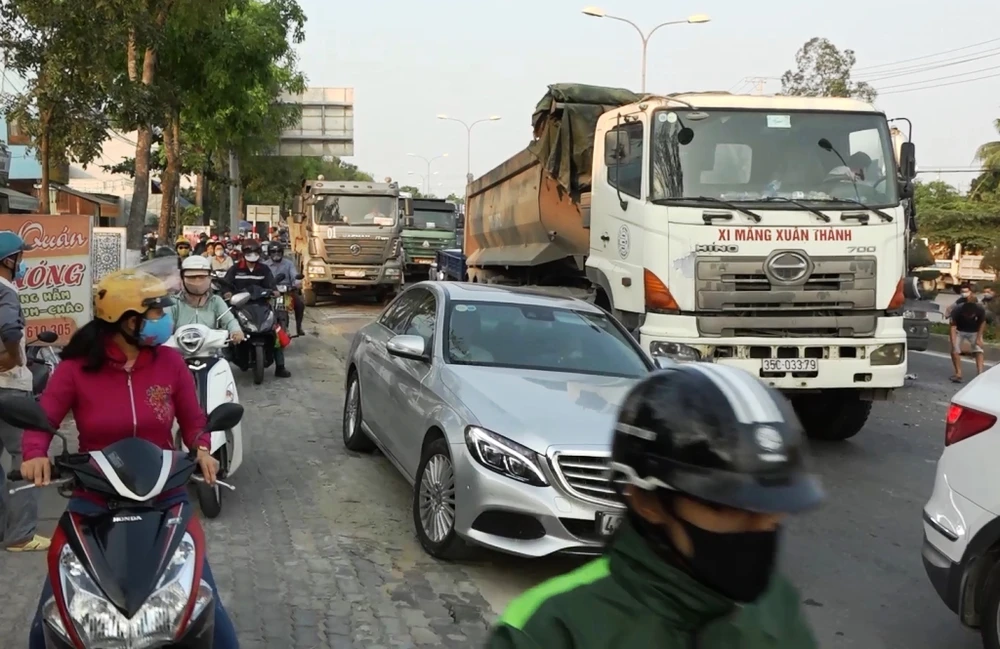 Vụ tai nạn xảy ra vào giờ tan tầm khiến các phương tiện qua đây gặp nhiều khó khăn.