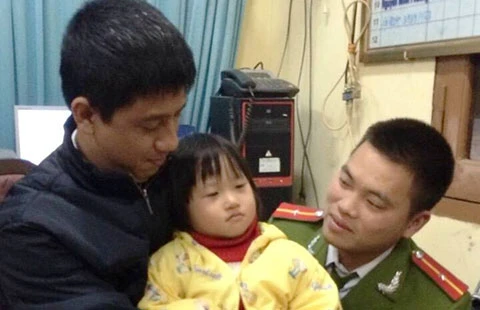 Cháu bé được giải cứu an toàn đưa về trụ sở công an để gia đình đến đón về. Ảnh: CTV
