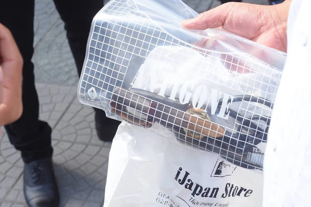 Dao và kéo của đối tượng khống chế nữ nhân viên bị thu giữ. Ảnh: NGUYỄN DO.