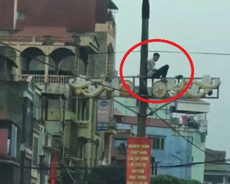 Theo các nhân chứng, vào thời điểm trên tại tuyến đường Giải Phóng, thuộc phường Giáp Bát, quận Hoàng Mai (Hà Nội), người dân bất ngờ phát hiện một nam thanh niên leo lên cột điện cố thủ.