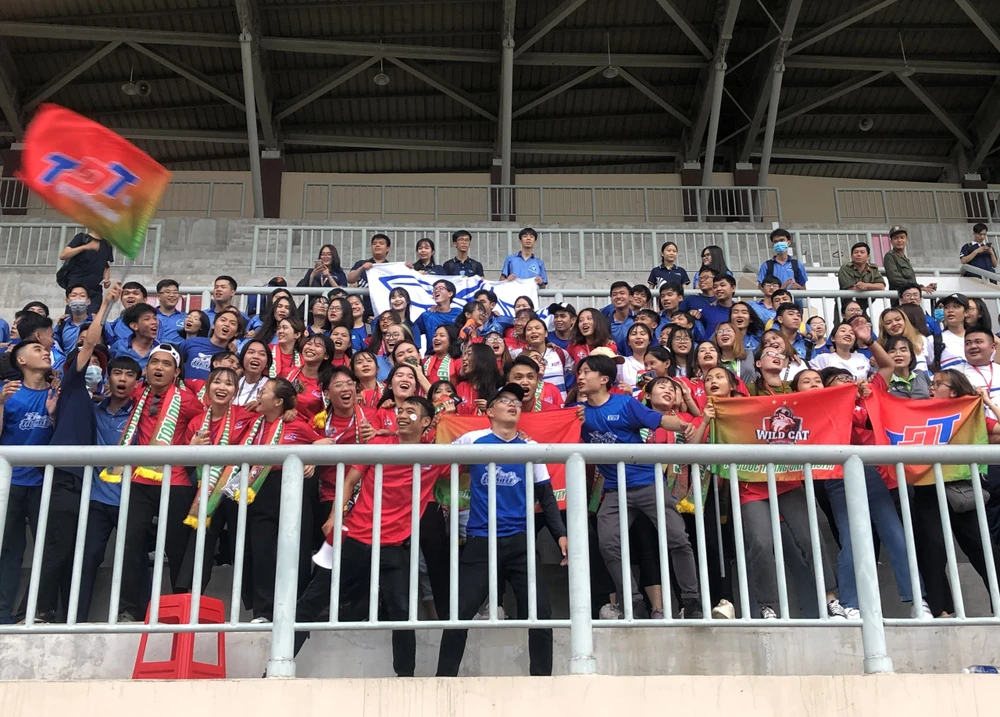 Cổ động viên cuồng nhiệt trên khán đài sân Dĩ An ở tất cả các trận đấu. Ảnh: ANH THÔNG.