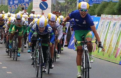 Nguyễn Thị Thật lần thứ hai ăn mừng chiến thắng chặng. Ảnh: MQ