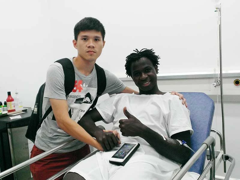 Cầu thủ Abass năm 2015 đoạt được danh hiệu Fair Play với hành động tha thứ cho cầu thủ đối phương làm gãy chân mình trong trận chung kết Cúp Quốc gia 2015. Ảnh: THÁI HẢI