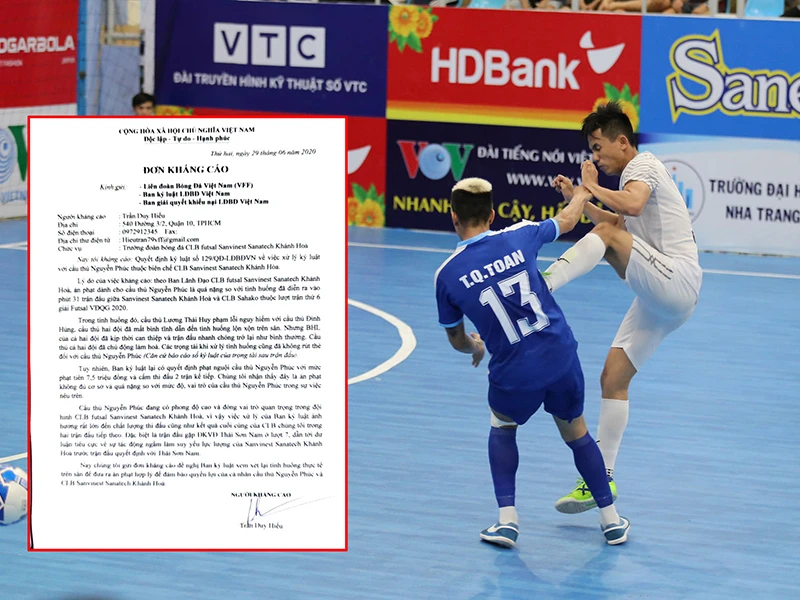 Đơn khiếu nại của lãnh đạo đội S. Khánh Hòa và diễn tiến so sánh cầu thủ Thái Sơn Nam bạo lực khiến đối thủ nằm viện điều trị nhưng vẫn bình chân như vại. Ảnh: CTP