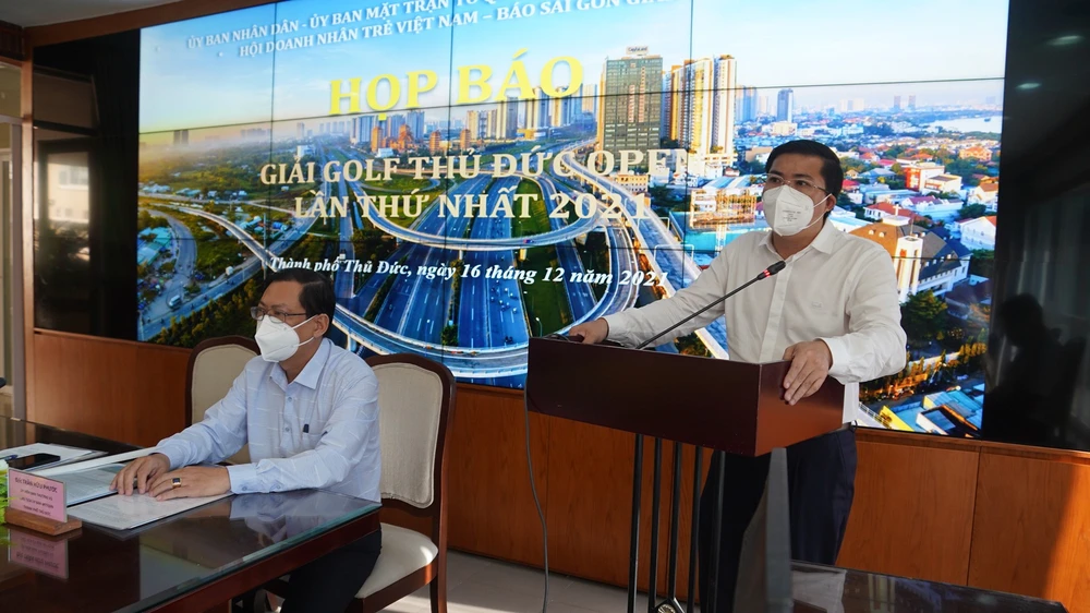 Thành ủy viên, Chánh văn phòng HĐND, UBND Thành phố Thủ Đức, phó ban tổ chức Võ Tấn Quan giới thiệu về giải Golf vì người nghèo. Ảnh: ANH PHƯƠNG.