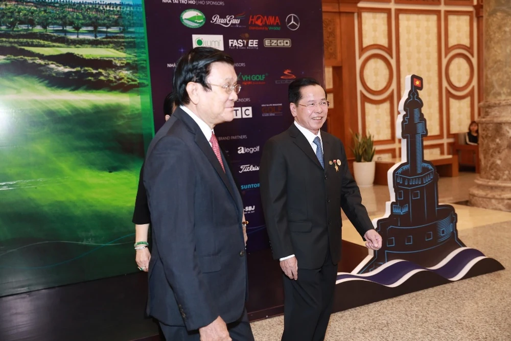 Ông Lê Văn Kiểm đón tiếp nguyên Chủ tịch nước Trương Tấn Sang tại chương trình.