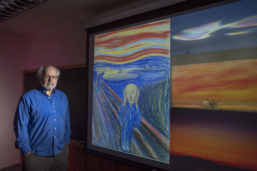 Tác giả nghiên cứu Alan Robock bên cạnh bức tranh The scream