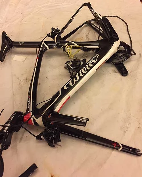 Sườn xe trị giá 4.000 USD bị gãy không thể phục hồi và VĐV lẫn CLB phải tự lo. Ảnh: H.HÙNG