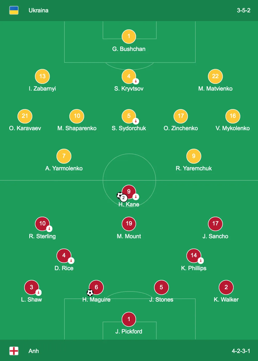 Ukraine tuy không phải đối thủ của tuyển Anh nhưng Tam sư đã phải chật vật chống lại đội bóng của Shevchenko trong quá khứ nhưng ở trận này, tuyển Anh đang vào “phom” phong độ cao.