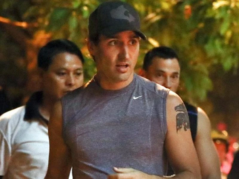 Thủ tướng Justin Trudeau chạy bộ tại TP.HCM tối 9-11, để lộ hình xăm trên bắp tay trái - Ảnh: Reuters