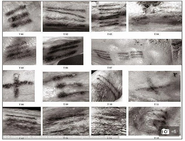 Những hình xăm trên xác ướp Otzi. Ảnh: Bolzano Museum
