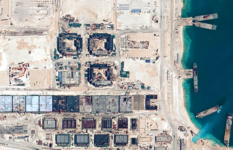 Hoạt động cải tạo đất của Trung Quốc trên đá Chữ Thập trong năm 2015. Ảnh: DIGITALGLOBE