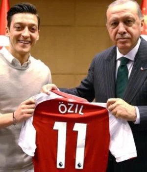 Oezil chụp ảnh cùng Tổng thống Erdogan với chiếc áo đấu Arsenal.