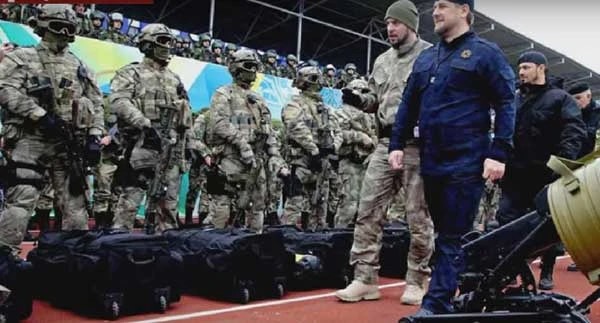 Lãnh đạo của Chechnya, ông Ramzan Kadyrov, gặp gỡ một đơn vị Spetsnaz của Chechnya. Ảnh: KAVKAZ-UZE