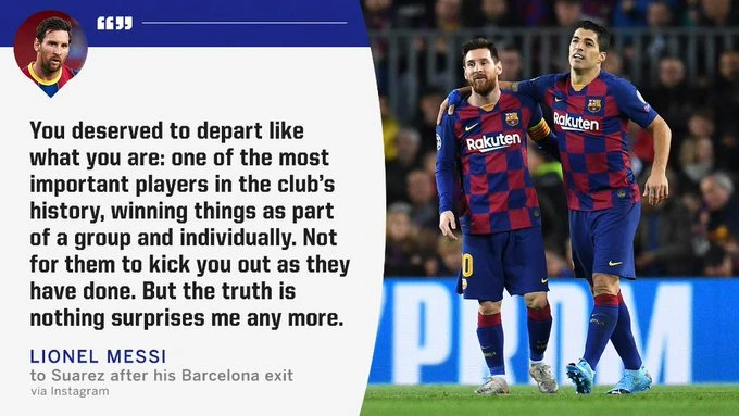Messi có vẻ thể hiện bức thông điệp qua Suarez rằng, một ngày nào đó chính bản thân Messi cũng bị cư xử như thế khi không còn “giá trị sử dụng”, tức cũng sẽ bị “đẩy đi”.
