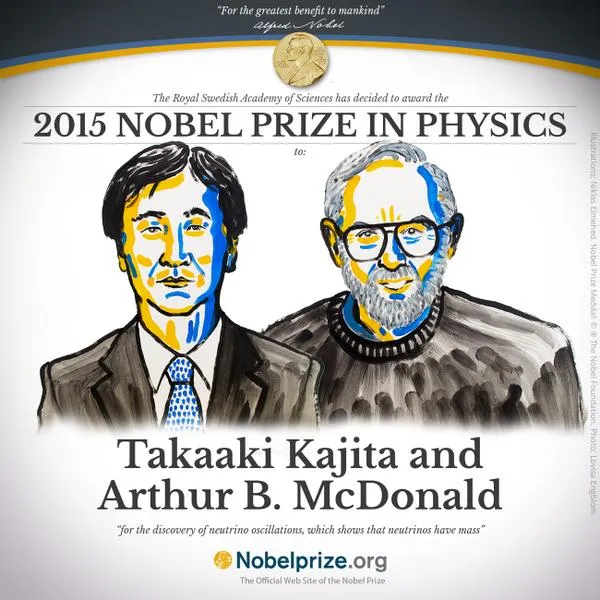 Theo tờ The Guardian, hai nhà khoa học Takaaki Kajita và Arthur B. McDonald đã có đóng góp quan trọng trong các cuộc thí nghiệm chứng tỏ hạt sơ cấp neutrino thay đổi đặc tính. Sự biến hóa này đòi hỏi neutrino có khối lượng.