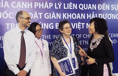 + GS-TS Mai Hồng Quỳ: Tôi đánh giá hội thảo đã thành công, đáp ứng đúng mục tiêu và ý nghĩa đã đặt ra. Trước hết, điều này thể hiện ở sự tham gia của đông đảo các học giả, chuyên gia pháp lý có uy tín trong khu vực và trên thế giới. Các học giả đã có những đánh giá thẳng thắn và mang tính khoa học về những khía cạnh pháp lý của hành vi Trung Quốc (TQ) hạ đặt giàn khoan Hải Dương 981 trái phép trong vùng đặc quyền kinh tế và thềm lục địa tại biển Đông, cũng như các yêu sách chủ quyền lãnh thổ của TQ. Ngoài ra, hội thảo cũng cho chúng ta một cái nhìn tổng quan về các biện pháp giải quyết tranh chấp hòa bình và đặc biệt là những vấn đề thực tế liên quan tới giải quyết tranh chấp thông qua định chế tài phán quốc tế. Những đánh giá và kết quả trao đổi của các chuyên gia tại hội thảo có thể giúp Việt Nam nhìn nhận thấu đáo hơn về các biện pháp giải quyết vấn đề chủ quyền quốc gia trên biển Đông để qua đó xây dựng một chiến lược đấu tranh hiệu quả.