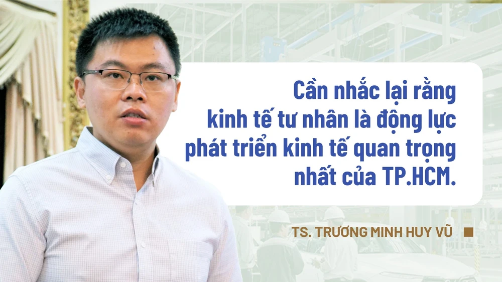 Thứ nhất, cơ cấu kinh tế và tốc độ chuyển dịch cơ cấu kinh tế TP. TP.HCM nếu đã định vị là một TP phát triển hệ thống dịch vụ là trọng tâm, thì chúng ta phải xác định được các mũi nhọn dịch vụ cụ thể, ví dụ như ngành ngân hàng, giáo dục, y tế, logistics. Song song đó, cần bắt đầu nghiên cứu căn cơ cách xử lý, phương thức giải quyết với các ngành công nghiệp, nông nghiệp cùng quỹ đất, nhà máy, phân xưởng hiện hữu.