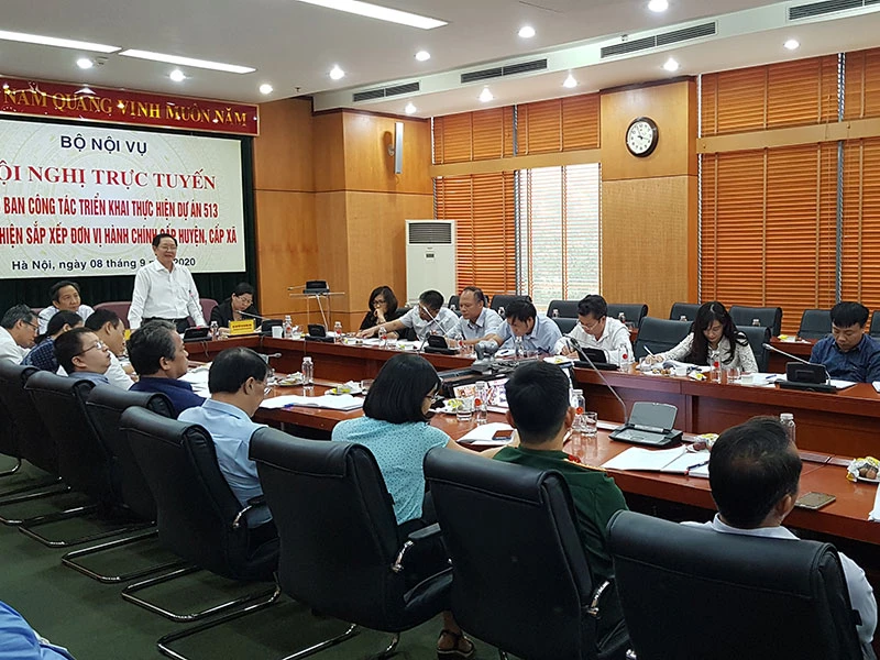 Sáng 8-9, tại trụ sở Bộ Nội vụ và 63 điểm cầu từ UBND các tỉnh, TP trực thuộc trung ương, Bộ Nội vụ chủ trì, phối hợp với Bộ TN&MT tổ chức hội nghị trực tuyến giao ban công tác triển khai thực hiện Dự án 513 về “Hoàn thiện, hiện đại hóa hồ sơ, bản đồ địa giới hành chính và xây dựng cơ sở dữ liệu về địa giới hành chính” và thực hiện sắp xếp các đơn vị hành chính cấp huyện, cấp xã giai đoạn 2019-2021 theo các nghị quyết của Ủy ban Thường vụ Quốc hội, Chính phủ.
