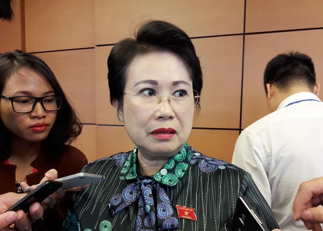 Bà Phan Thị Mỹ Thanh đang trả lời báo chí bên hành lang Quốc hội ngày 24-10