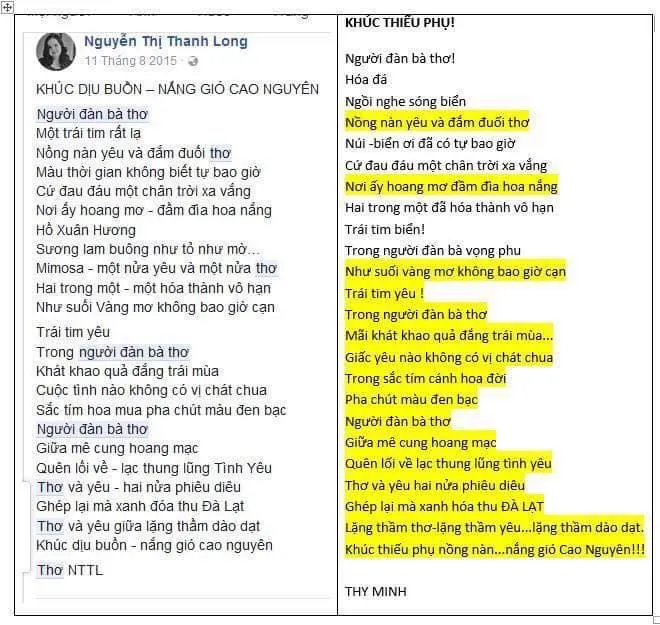 Bằng chứng tố cáo tác giả Nguyễn Thị Thanh Long "đạo thơ" được tung lên mạng.