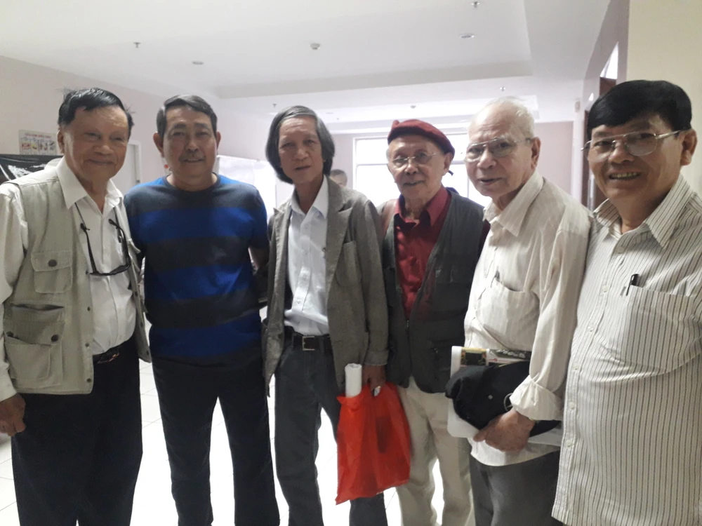 Những nhà văn đến dự lễ (từ trái sang): Nhà văn Vũ Hạnh, nhà văn Trần Tử Văn, nhà nhiếp ảnh Lương Duy Hiệu, nhà thơ Thiên Hà, nhà văn Đoàn Minh Tuấn.