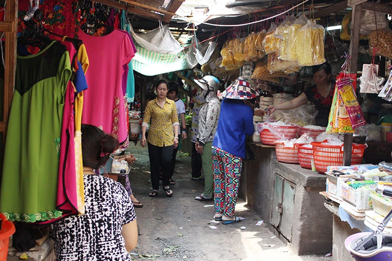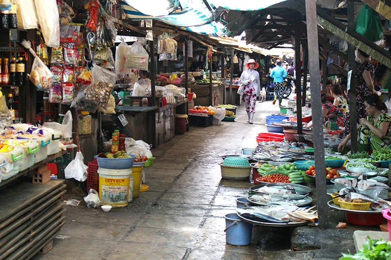 Chợ được bố trí các sạp khô, ướt. Ảnh: LÊ THOA