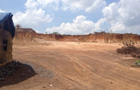 Khu đất của gia đình bà Lê Thị Phương Mai đã bị thu hồi để làm mỏ đá. Ảnh: TIẾN DŨNG