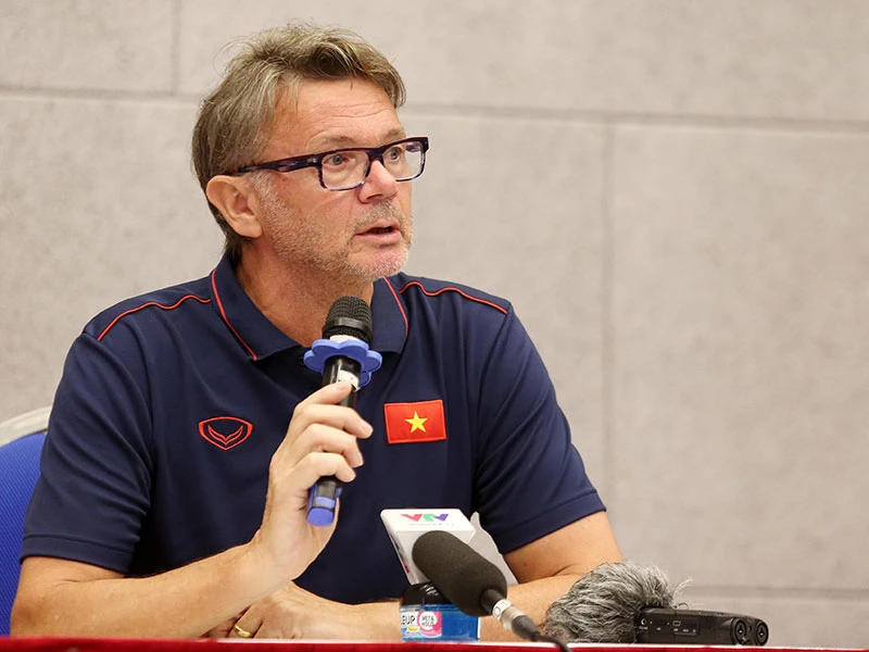 HLV Troussier của U-19 Việt Nam đang chia sẻ về công tác chuẩn bị của U-19 Việt Nam. Ảnh: NGỌC DUNG