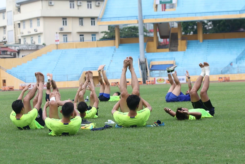 Sau ít giờ nghỉ ngơi tại địa điểm đóng quân là khách sạn thể thao cách không xa sân Mỹ Đình, thầy trò HLV Ckirt Andulak đã có buổi tập đầu tiên tại Hà Nội. Buổi tập diễn ra trên sân Hàng Đẫy, một trong hai địa điểm diễn ra các trận đấu của giải vô địch U-19 Đông Nam Á - Cúp Vietcombank 2016.