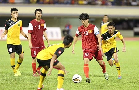 Công Phượng (10) dù không ghi bàn nhưng vẫn xuất sắc. Ảnh: đức đồng