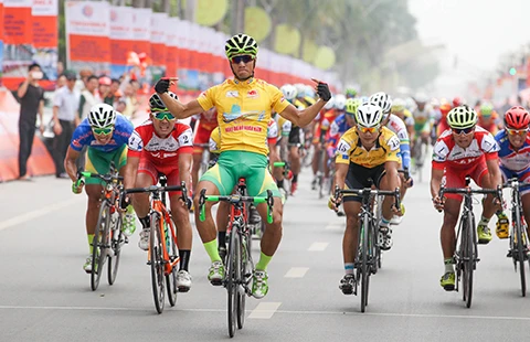 Áo vàng Thành Tâm lại chiến thắng ở đích đến Thanh Hóa. Ảnh: MQ