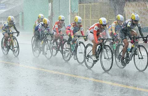Các cuarơ nữ đua trong mưa bão. Ảnh: MQ