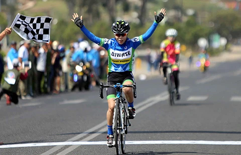 Tay đua Cao Thị Cẩm Lệ giành chiến thắng đầu tay về cho đội chủ giải Biwase. Ảnh: MQ