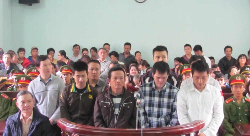 Nhóm đối tượng đánh bạc trước tòa. Ảnh: V.L