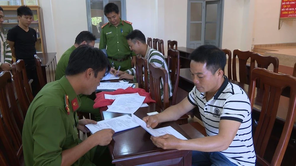 Các phạm nhân làm thủ tục trước khi trở về địa phương. Ảnh: M.KHANH