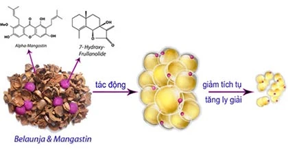 Nghiên cứu mới nhất của các nhà khoa học Mỹ về mỡ trắng đã tạo nên bước đột phá trong “cuộc chiến” chống lại thừa cân, béo phì, mở ra hướng điều trị bằng cách tác động ngay vào giai đoạn đầu tiên của việc hình thành tế bào mỡ trắng. Từ đây, trường ĐH California – Davis Hoa Kỳ đã tìm ra tinh chất thiên nhiên Belaunja và Mangastin chứa những hoạt chất có khả năng làm giảm tích tụ và tăng ly giải mỡ trắng, giúp vòng eo, bụng, đùi thon gọn đồng thời ngăn ngừa các bệnh mạn tính do béo phì gây ra như tim mạch, tiểu đường, rối loạn nội tiết, hô hấp, xương khớp, ung thư... Belaunja và Mangastin cũng đã được chứng minh về tính an toàn khi không gây mệt mỏi, chán ăn, buồn nôn, rối loạn tiêu hóa, ức chế thần kinh cho người sử dụng.