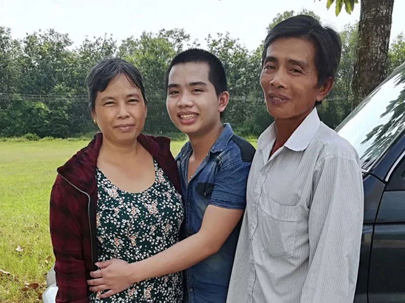 Đặng Thanh Tuấn (giữa) trở về trong vòng tay ba mẹ sau khi được tòa hai cấp tuyên không phạm tội hiếp dâm trẻ em. Ảnh: HY