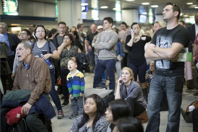 Hành khách nhốn nháo sau khi tàu bị mắc kẹt 3 giờ đồng hồ và hoảng loạn bởi tin đồn thất thiệt về một vụ xả súng. Ảnh: AP