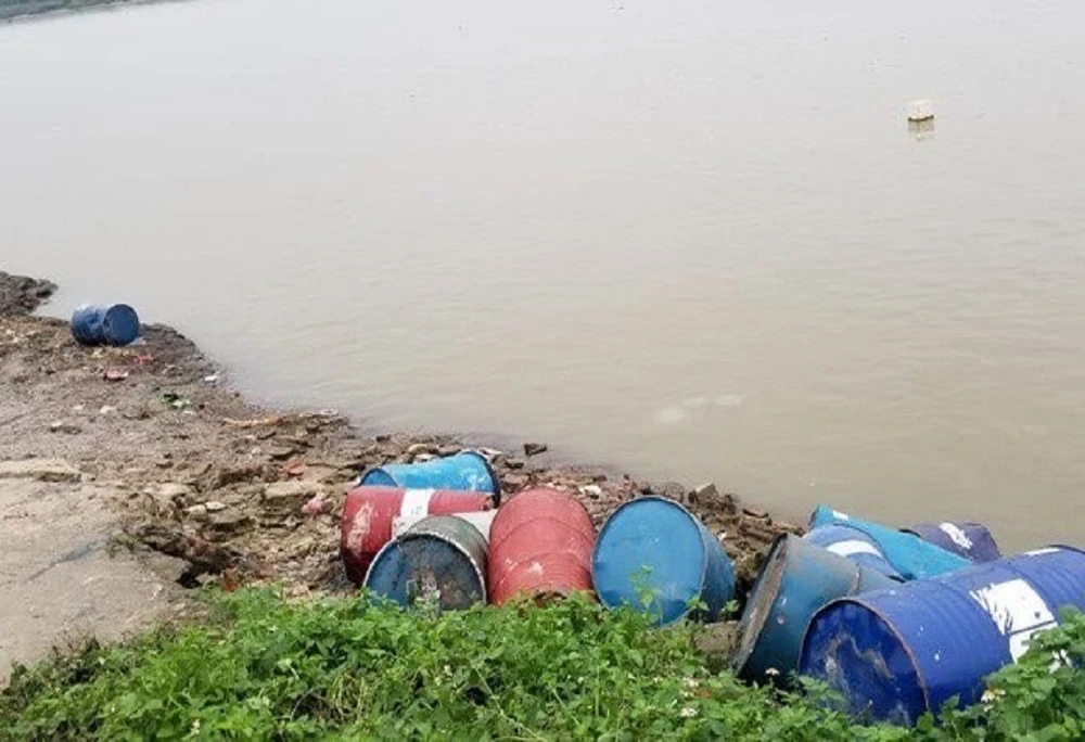 Biết số dung dịch trong 14 thùng phuy không thể tái chế, ông Hùng mang vứt toàn bộ xuống bờ sông Hồng.