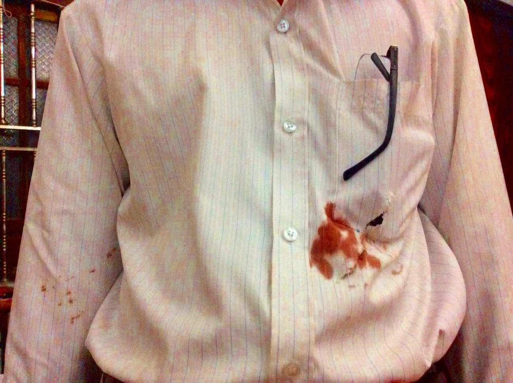 Theo thông tin của PV, trước đó ông Mười có nghe điện thoại rồi tiện tay bọc điện thoại ở túi áo. Nhờ đó nhát chém trúng vào điện thoại làm hỏng nó, tuy nhiên vẫn gây thương tích ở phần ngực trái nạn nhân.