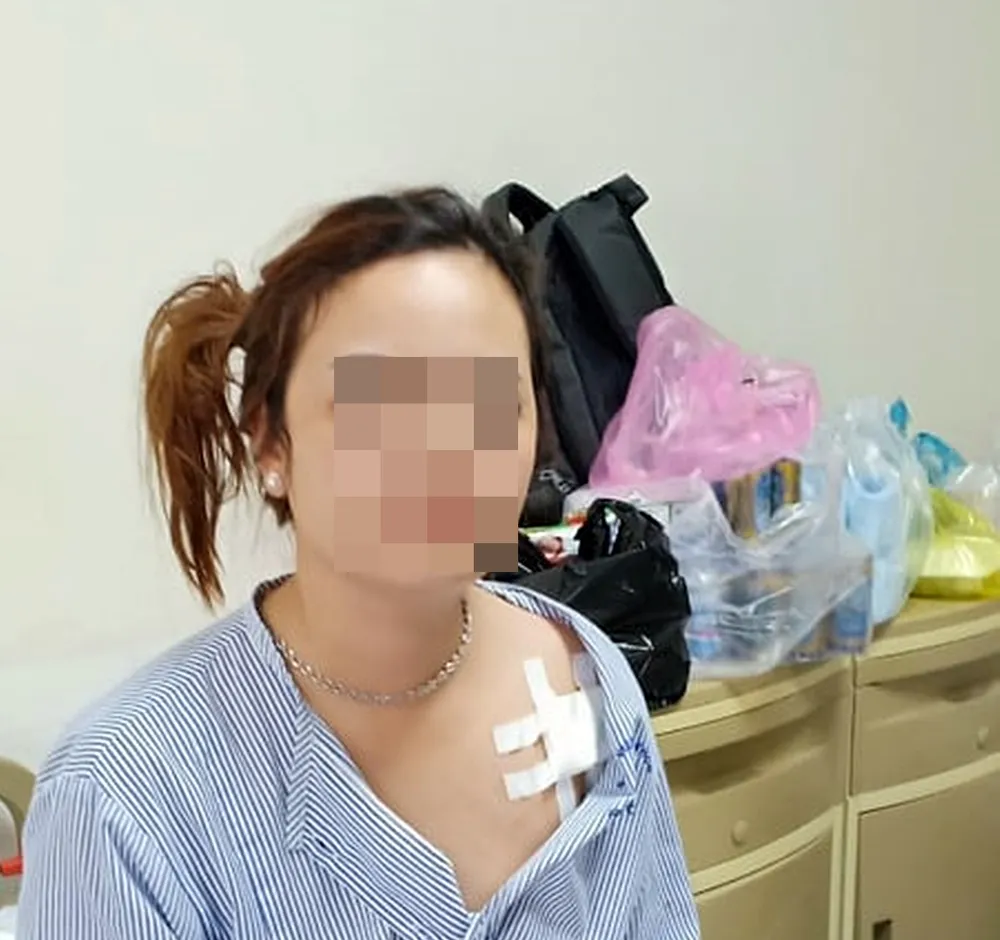 Tối 5-11-2019, khi chị H. đang chở con trai bằng xe máy ở TP Phan Thiết thì bị ông T. dùng hung khí tấn công, đâm vào vùng xương đòn trái khiến chị ngã xuống đường.
