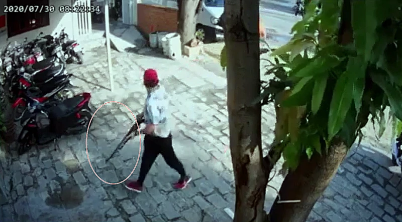 Trích xuất camera, cơ quan chức năng phát hiện Hải cầm súng dài đi lại nghênh ngang và rượt đuổi chủ resort làm ông này phải chạy trốn.