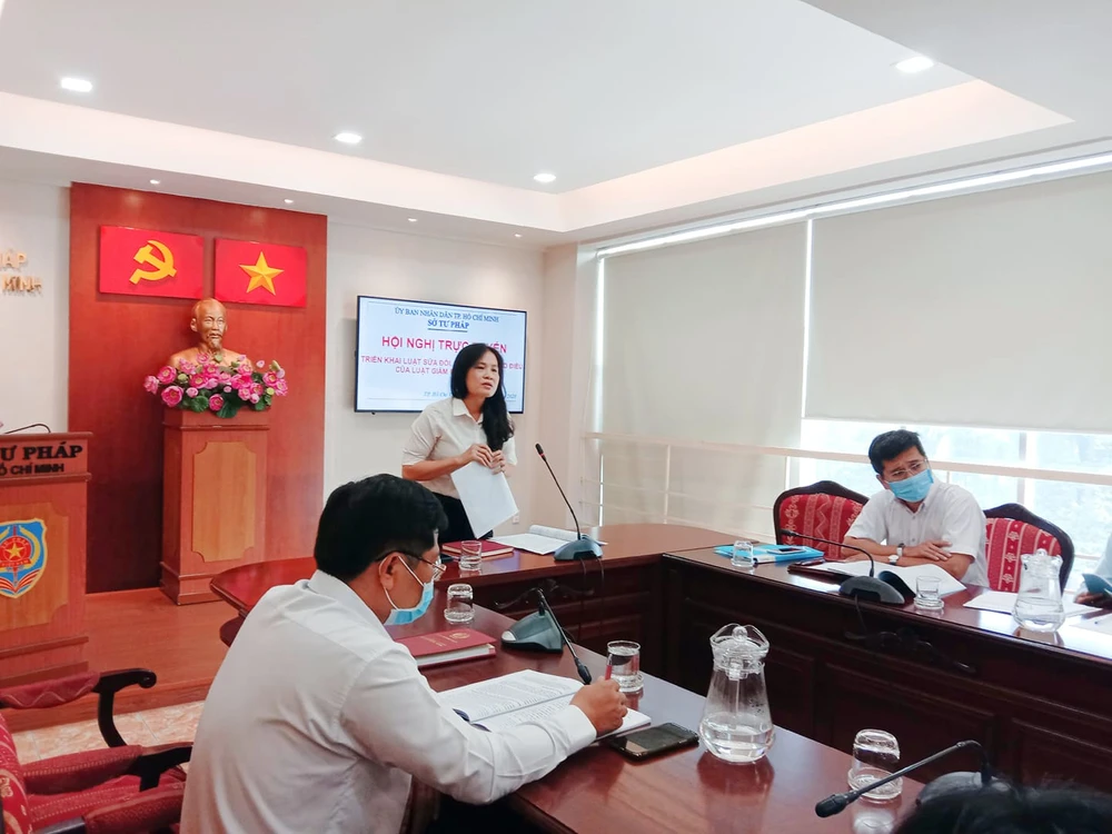 Bà Nguyễn Thị Hồng Hạnh, Phó Giám đốc Sở Tư pháp TP.HCM, phát biểu tại điểm cầu TP.HCM. Ảnh: A.TUẤN
