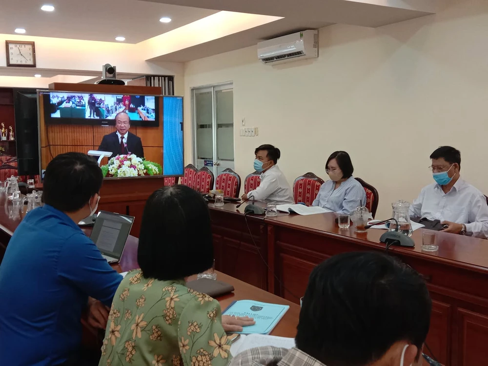 Hội nghị trực tuyến, ảnh chụp tại điểm cầu TP.HCM. Ảnh: A.TUẤN