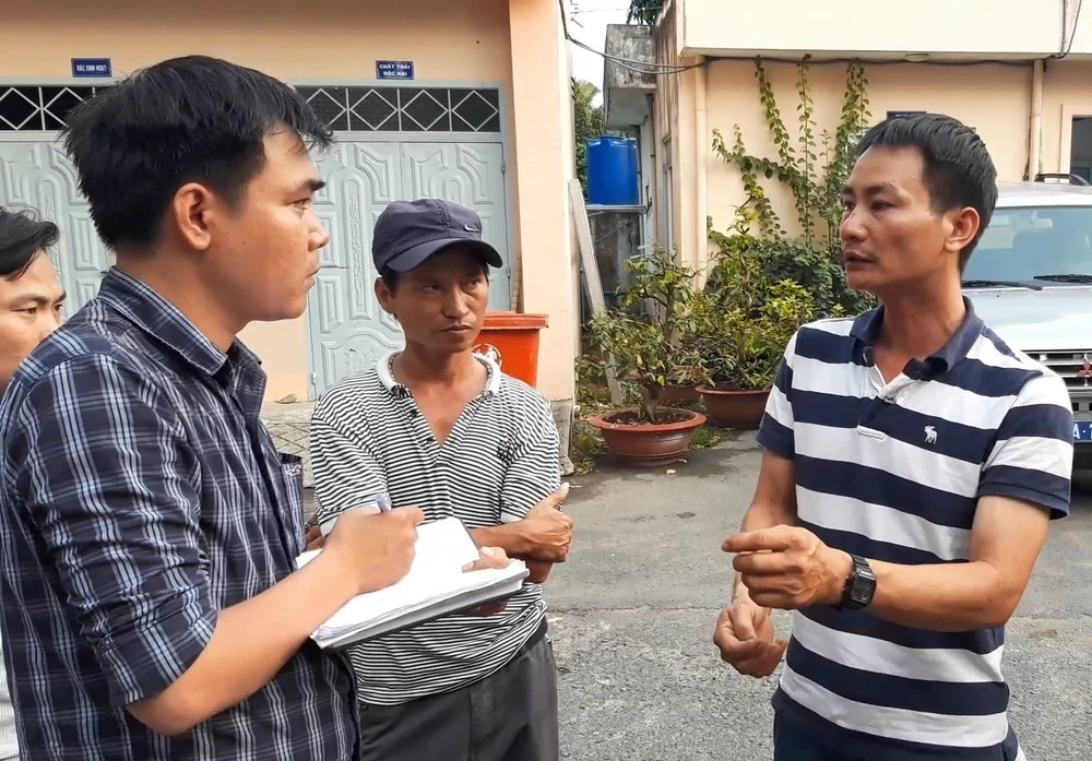 Trao đổi với PV PLO, anh Thế (bên phải) rất bức xúc khi con mình chết không rõ nguyên nhân.