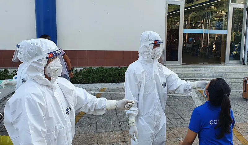 Lấy mẫu xét nghiệm sàng lọc cộng đồng ở TP Tuy Hòa, Phú Yên. Ảnh: TẤN LỘC