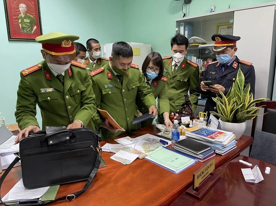 Khám xét nơi làm việc ông Hoàng Văn Đức. Ảnh: MH
